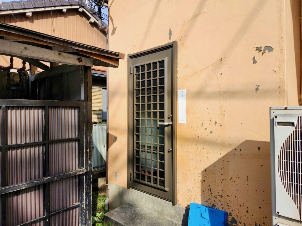 経営している喫茶店の勝手口ドアが古くなり、扉の閉まりを悪くなってきたので直したい。また防犯性も高めたい。